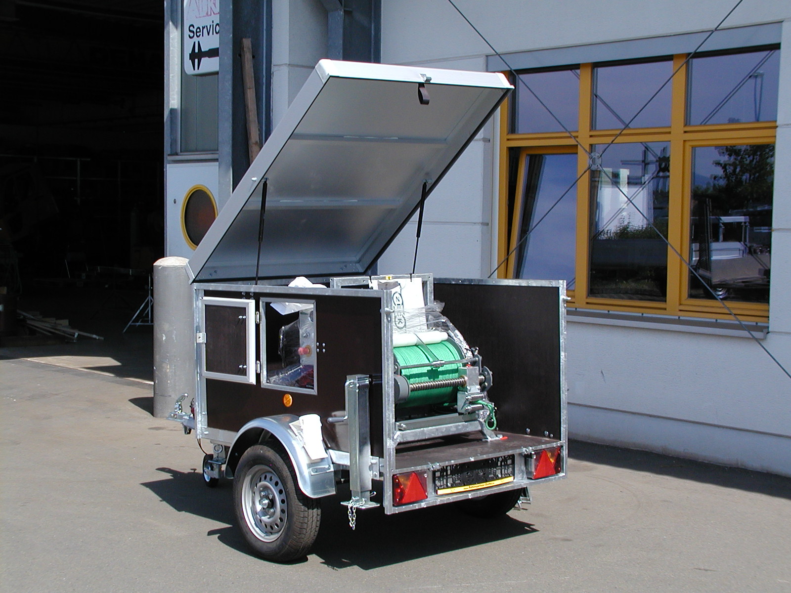 - Bodenplatte und Bordwände aus wasserfesten, rutschhemmenden Siebdruckplatten