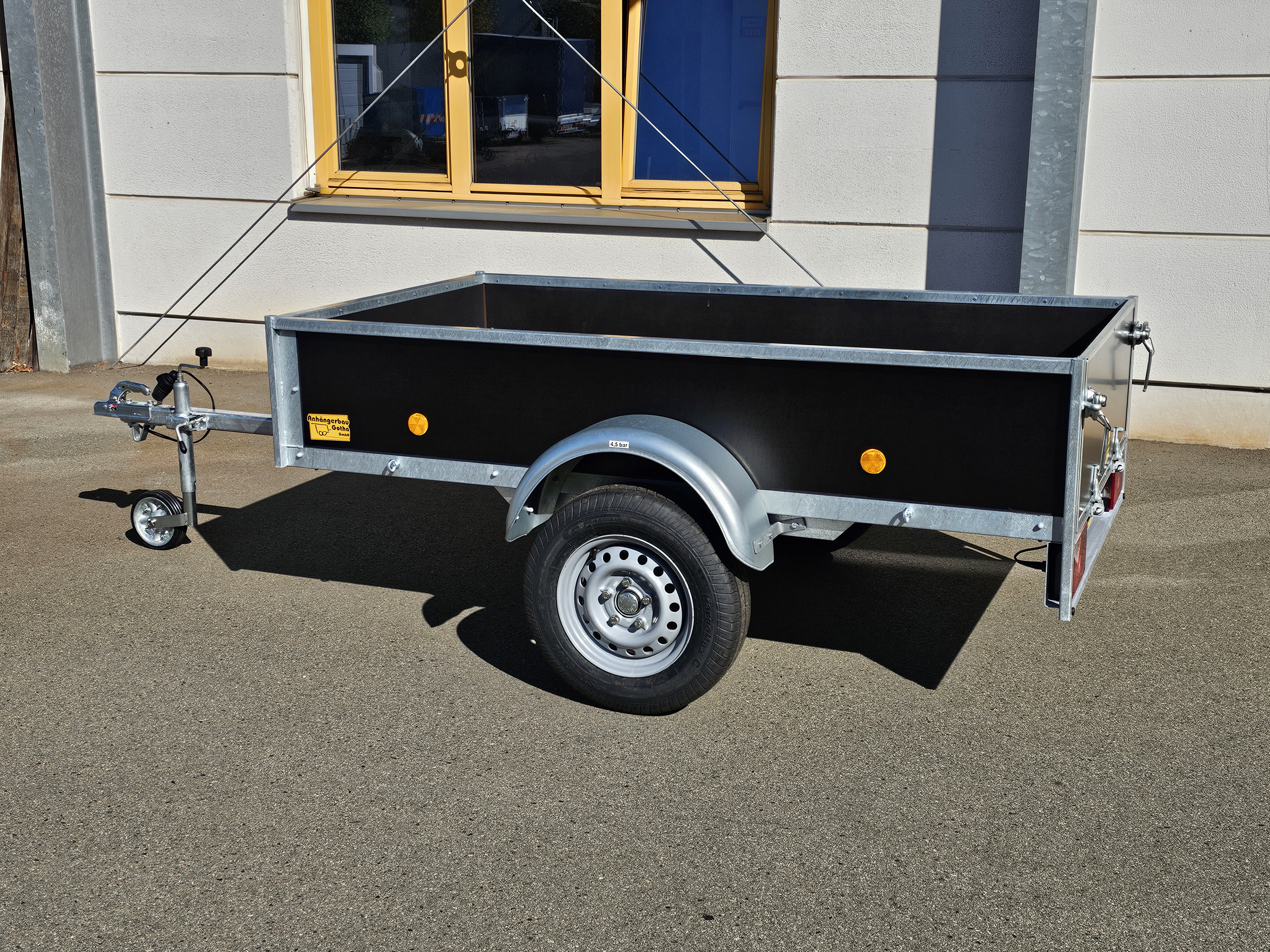 - Grundrahmen mit Bordwandrahmen verschweißt und komplett feuerverzinkt (Siebdruckbordwände)